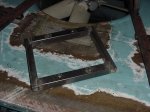 wooden framework inside the rear "transom". There is also a piece of angle welded to the forward tube of the box frame with bolts going thru the wooden stringer that goes across the rear deck. |