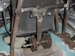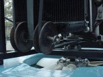 Looking forward. The fan belt easily clears under the radiator. The Idler pulleys are attached to a